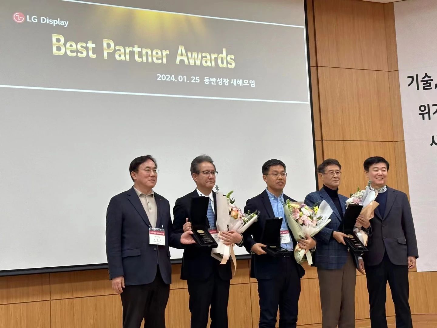 近日,LG Display在韓國舉行同伴成長交流會,杉金光電出席大會并榮獲由鄭哲東社長頒發的獎項——Best Partner Award。